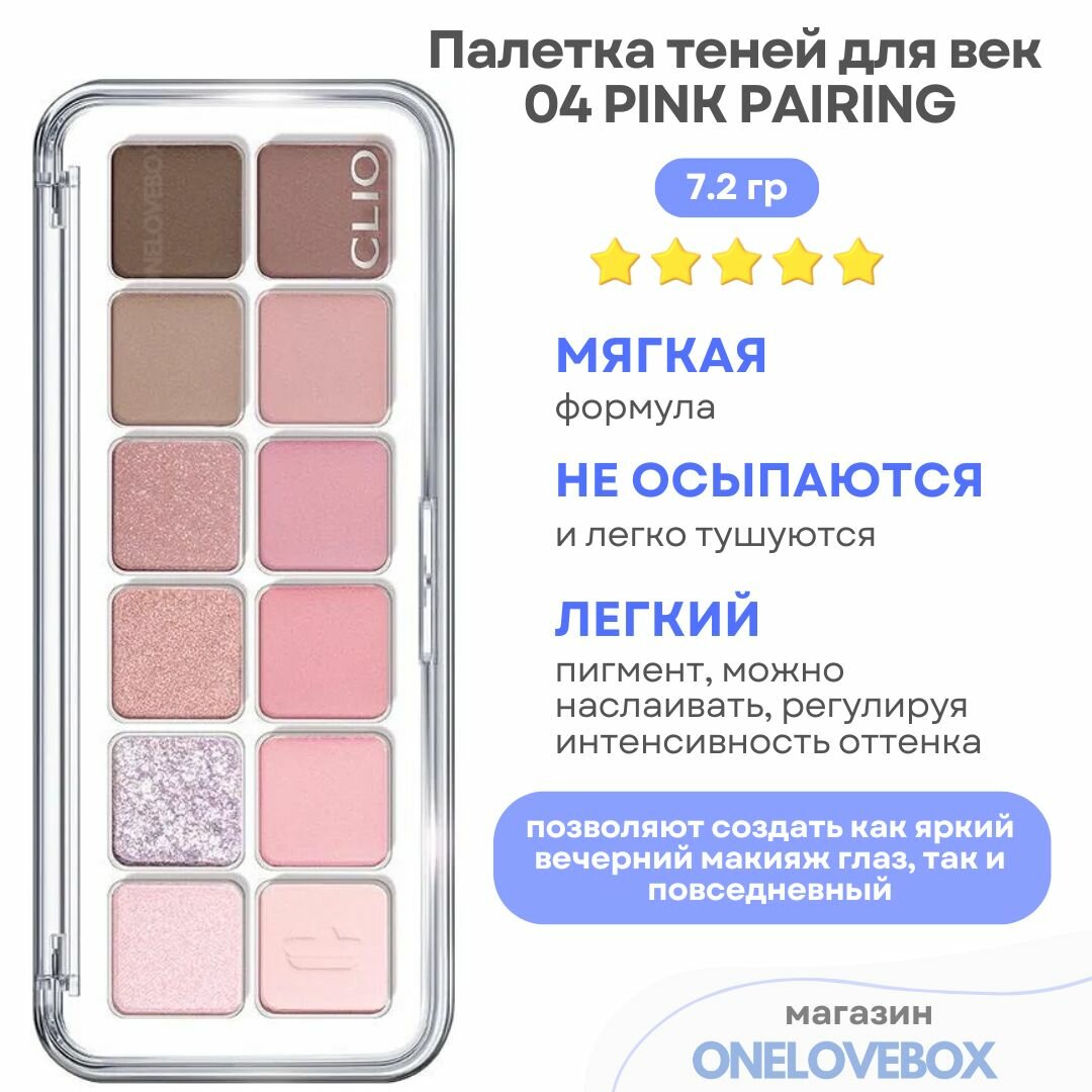 Мы выбрали 10 лучших цен на CLIO PRO EYE PALETTE AIR 04 PINK PAIRING - Палетка теней для век. Перед тем как купить CLIO PRO EYE PALETTE AIR 04 PINK PAIRING - Палетка теней для век посмотрите найденные предложения из Яндекс Маркета и других сайтов на основе XML фидов.