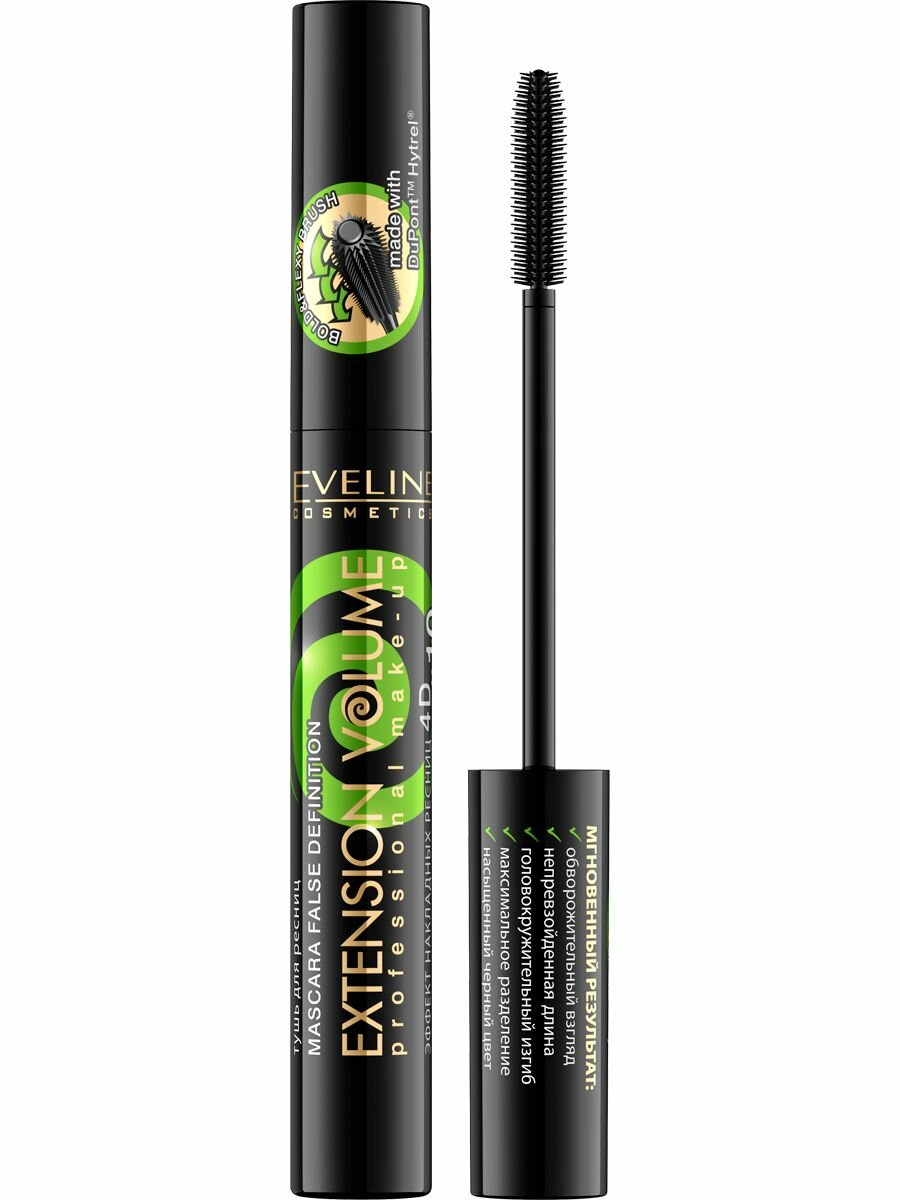 | Подробная комплектация | Тушь для ресниц Eveline Cosmetic, EXTENSION VOLUME, водостойкая, черная, 10 мл, 1 уп |