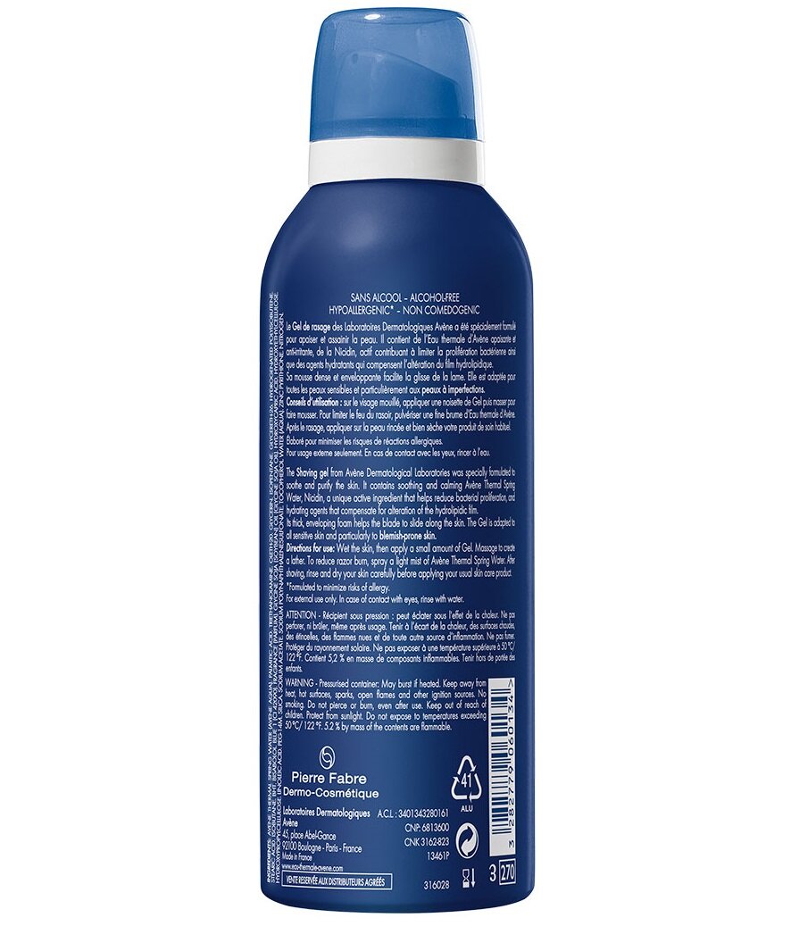 | Способ применения | нанесите немного геля на мокрое лицо и помассировать до появления пены. После бритья ополоснуть лицо водой и нанести на чистую сухую кожу средство после бритья Avene |