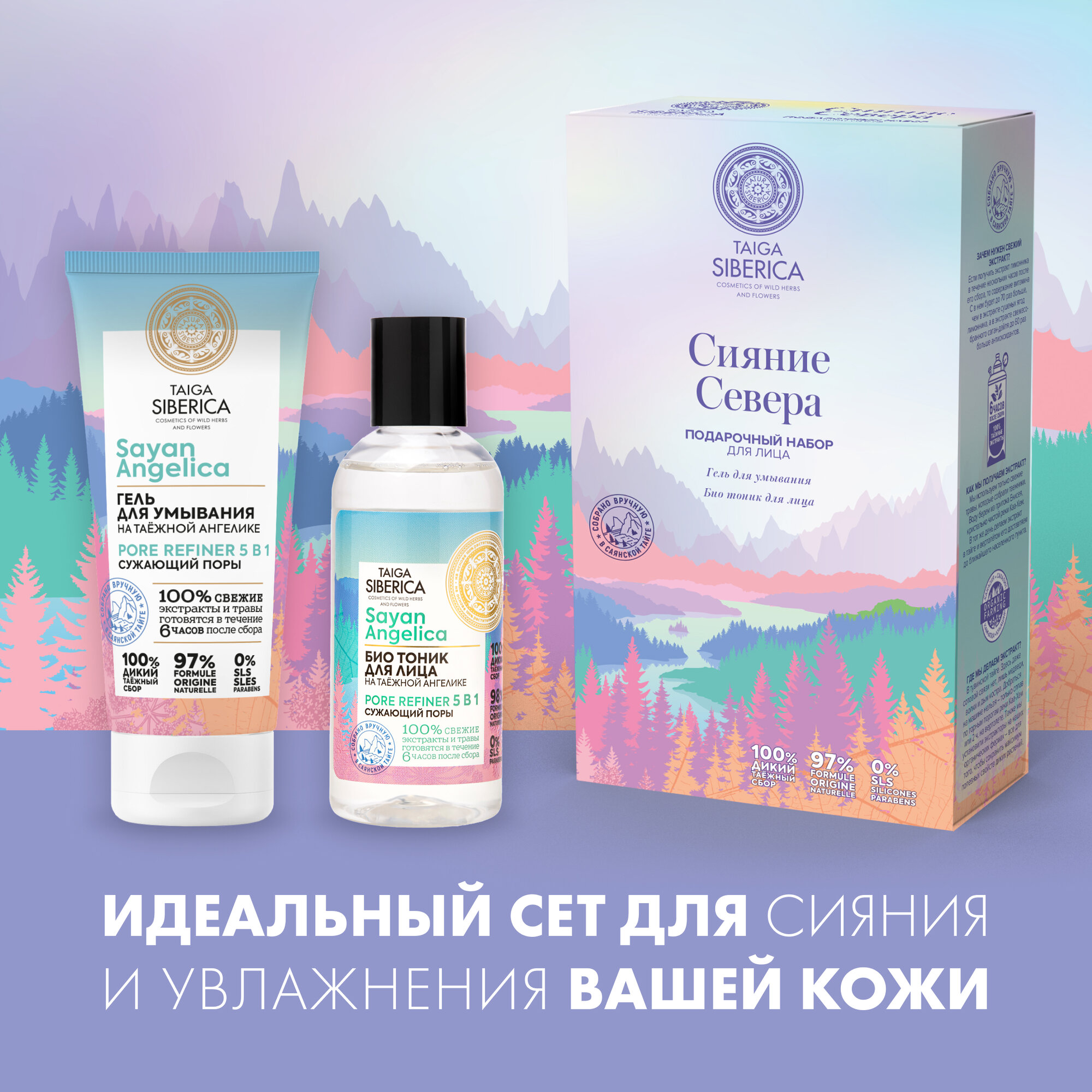 Natura Siberica Подарочный набор Taiga, Сияние севера, для лица, гель для умывания и тоник