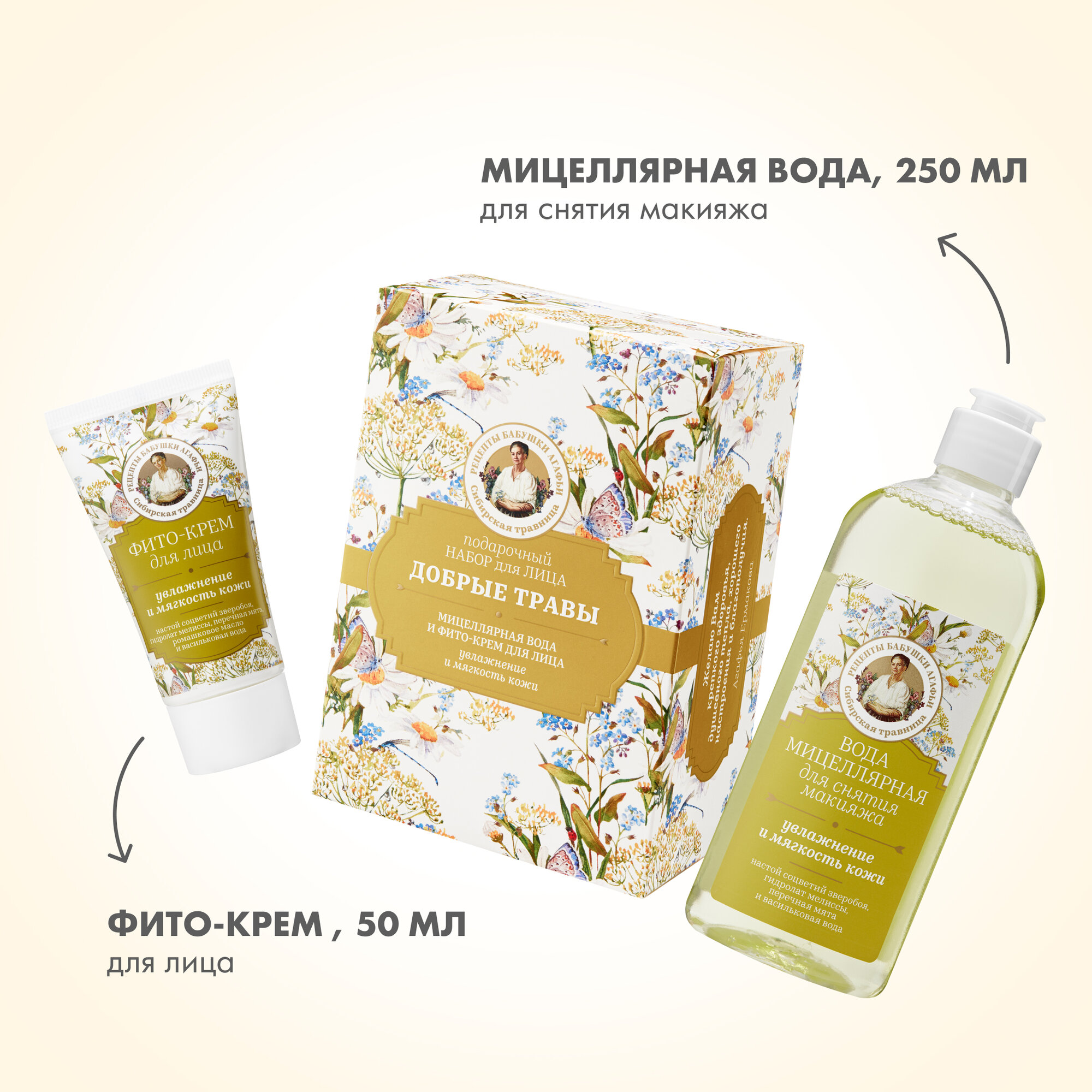 Подарочный набор для лица Рецепты бабушки Агафьи Сибирская Травница "Добрые травы", 1*250 мл, 1*50 мл информация: