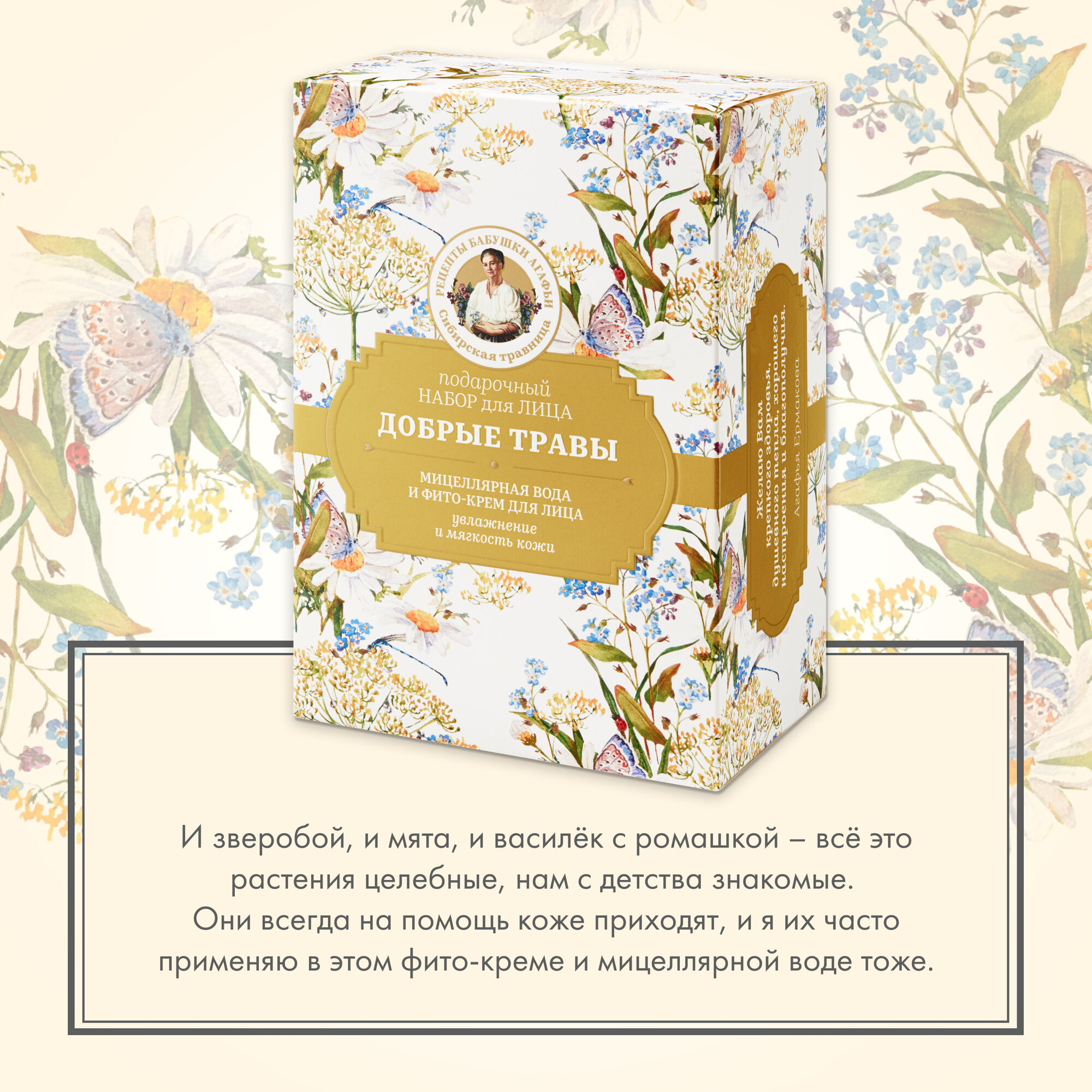 Отзывы на Подарочный набор для лица Рецепты бабушки Агафьи Сибирская Травница "Добрые травы", 1*250 мл, 1*50 мл