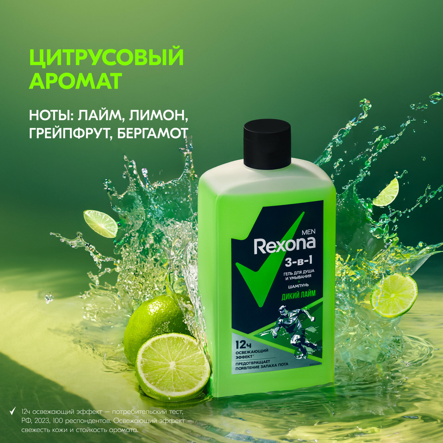 Отзывы на Rexona Men гель для душа, умывания и шампунь 3 в 1 Дикий лайм 490 мл