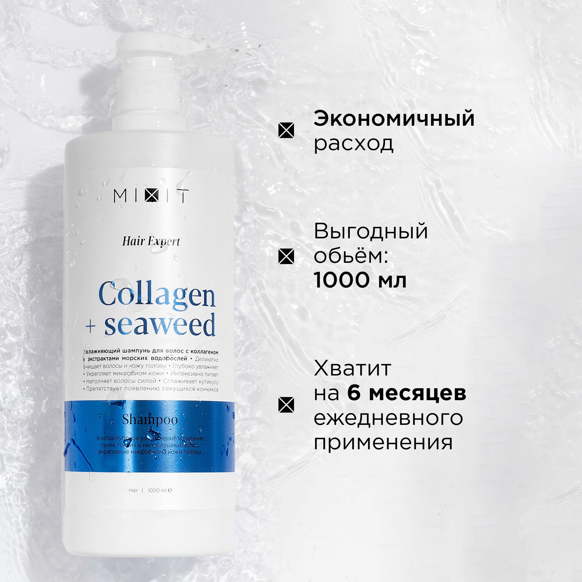 Шампунь для волос MIXIT Hair Expert увлажняющий и восстанавливающий с коллагеном, 1000 мл информация: