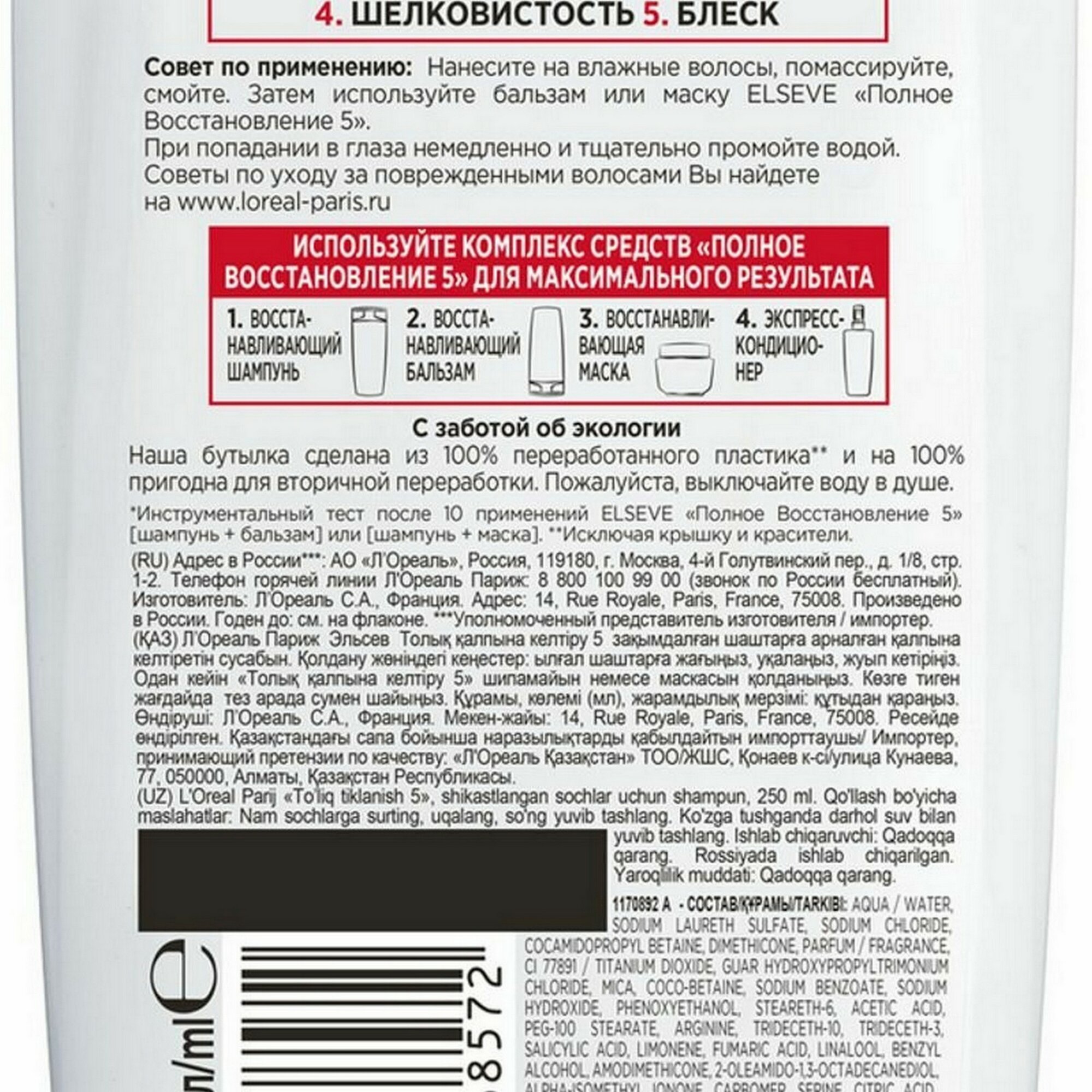L'Oreal Paris Шампунь Elseve Полное Восстановление 5 2% концентрат с кератином для поврежденных волос, 250 мл - 6 шт информация: