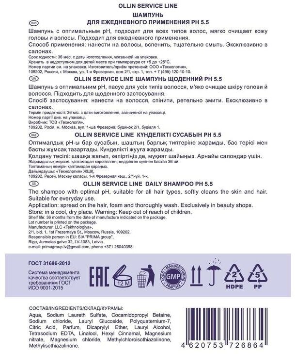 Шампунь для ежедневного применения OLLIN SERVICE LINE, 5000мл информация: