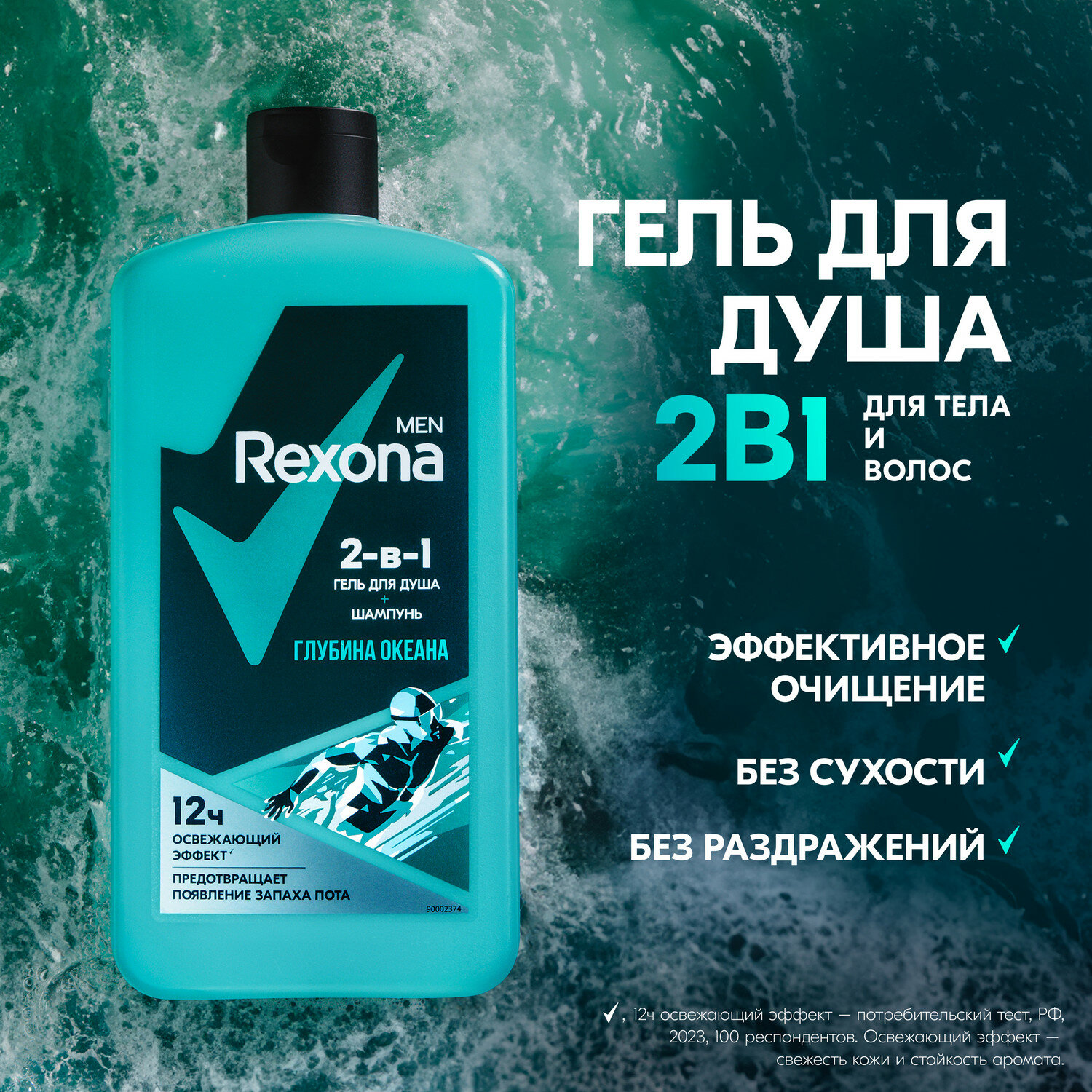 Гель для душа и шампунь REXONA MEN 2 в1 "Глубина океана", 490 мл информация: