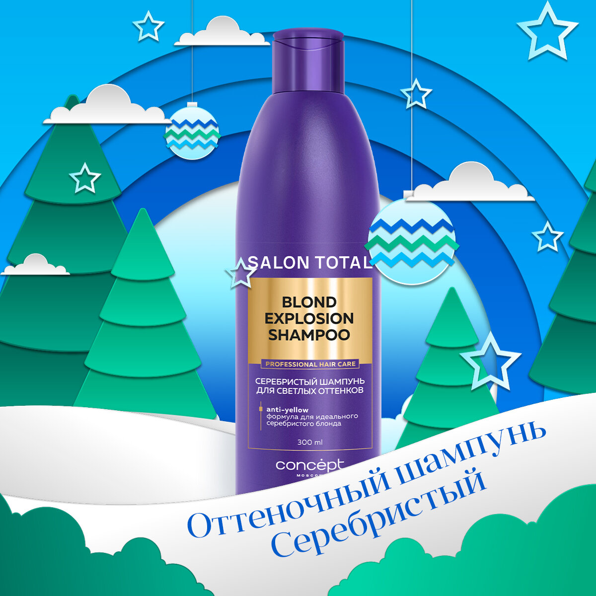 Серебристый шампунь Concept для светлых оттенков, 300 мл