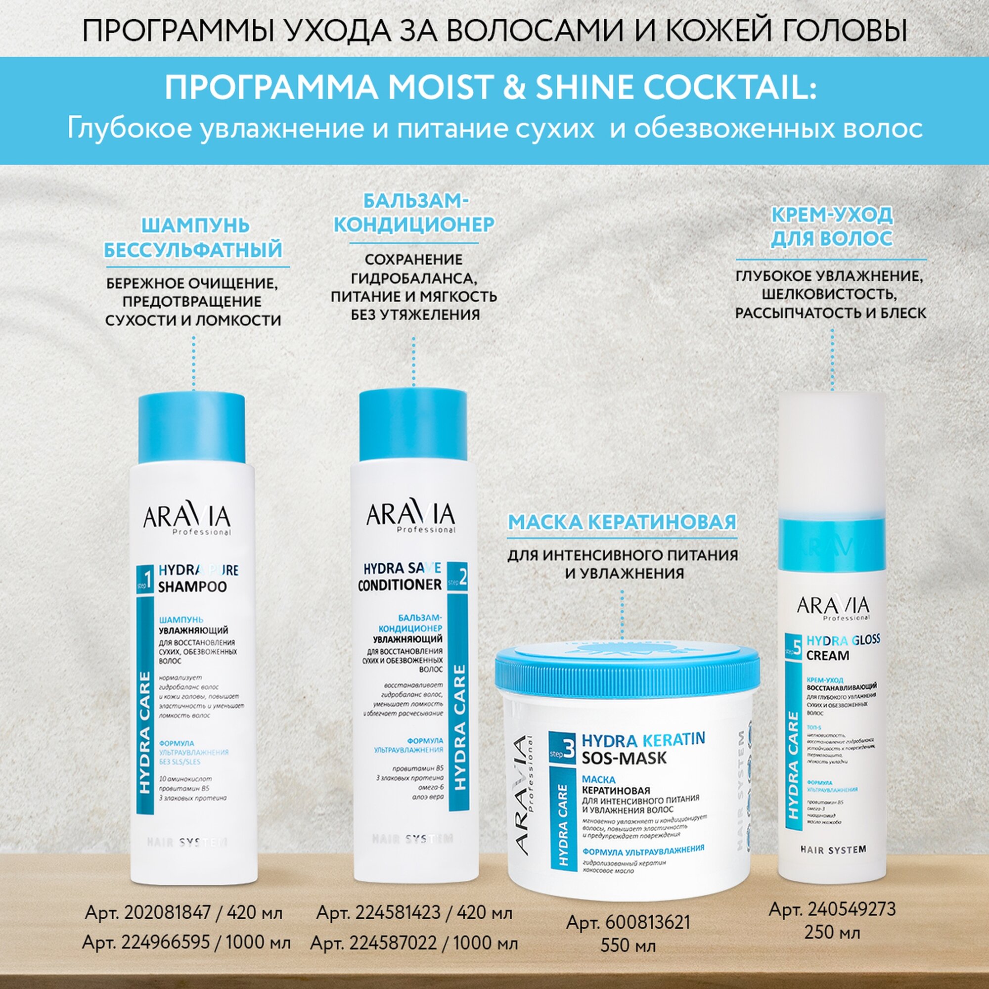 ARAVIA Шампунь увлажняющий для восстановления сухих, обезвоженных волос Hydra Pure Shampoo, 400 мл