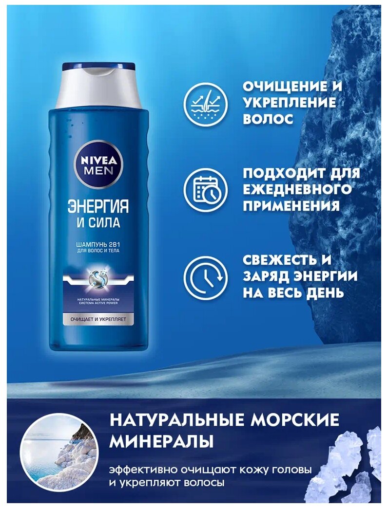 Nivea шампунь Men Энергия и сила с морскими минералами, 400 мл 438 ₽