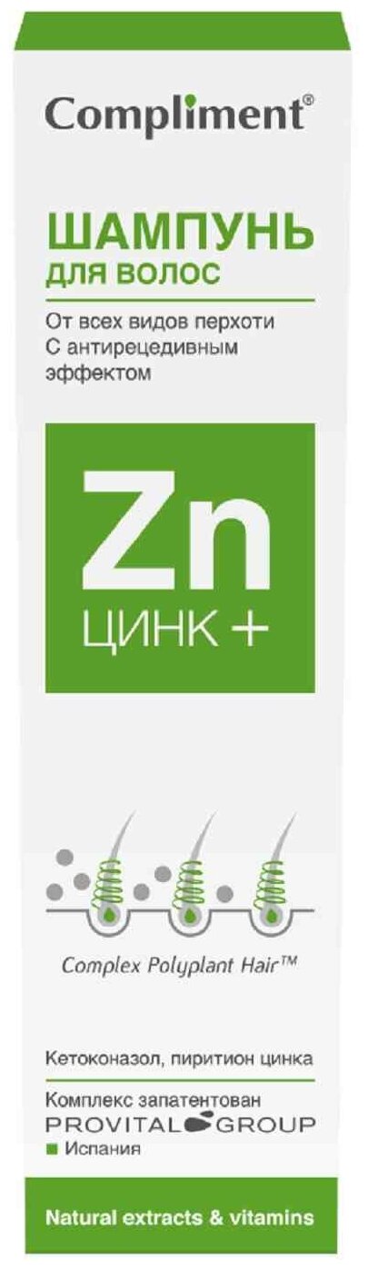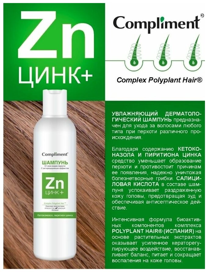 Compliment ЦИНК+ Шампунь для волос от всех видов перхоти 200мл информация: