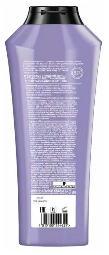 Gliss Kur Шампунь для волос Совершенство блонд оттенков, 3 х 360 мл. Для блондинок. Ликвидация желтизны. Фиолетовый шампунь информация: