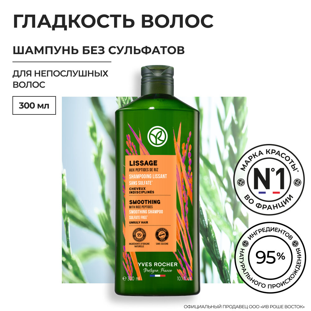 10 цен на Yves Rocher Шампунь гладкость волос с Пептидами Риса - Без Cульфатов - Для непослушных волос, 300мл