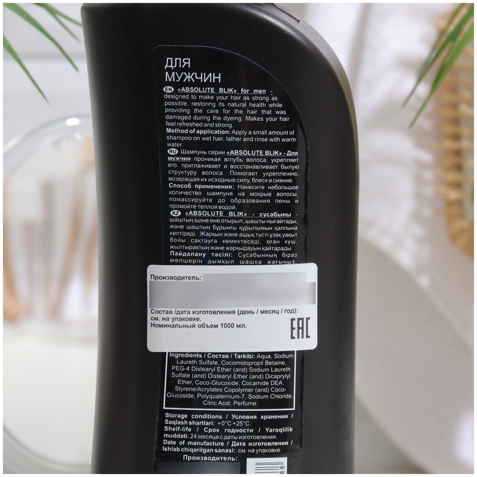 Шампунь для волос Absolute Blik мужской, 1000 мл информация: