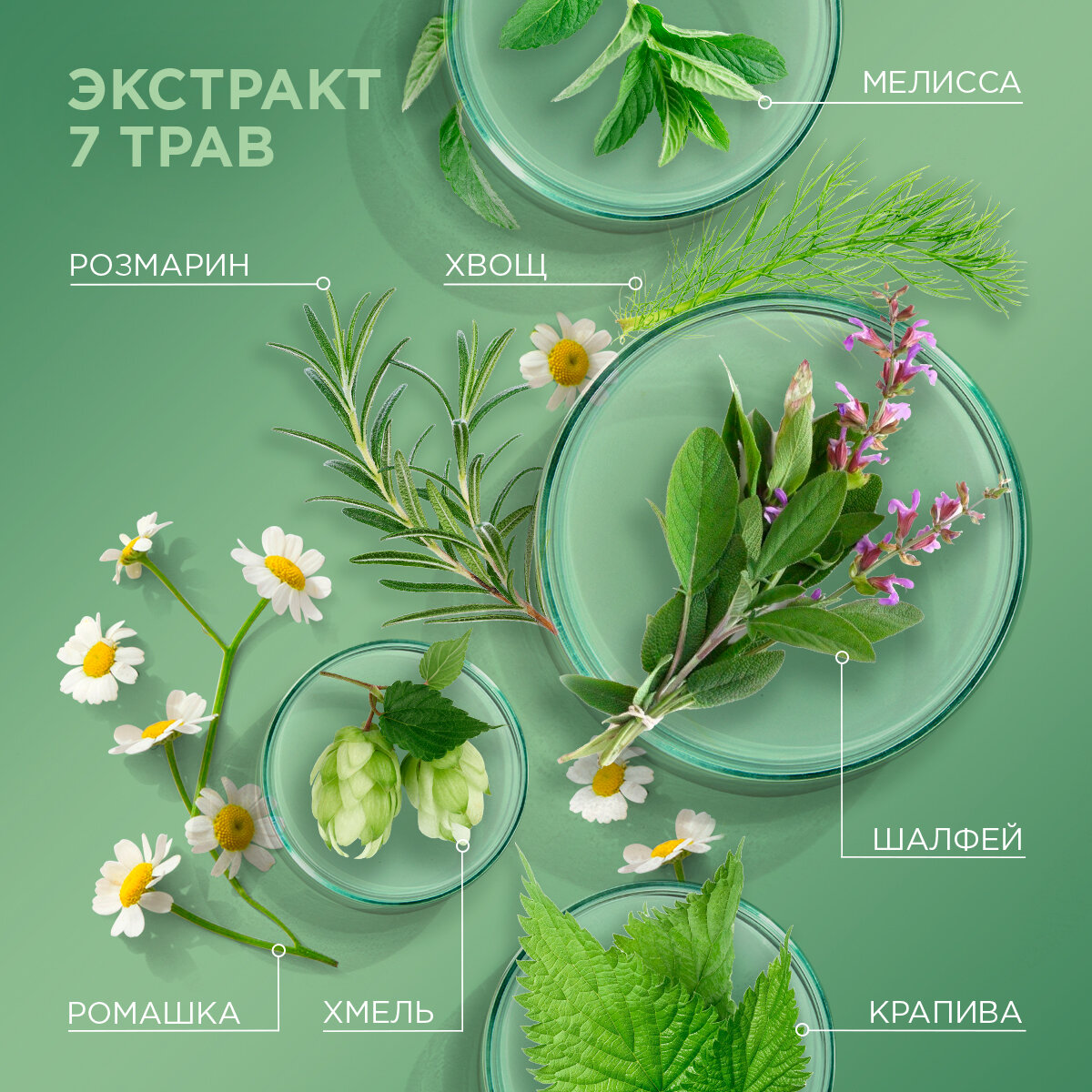 | Дополнительная информация | содержит: экстракт крапивы, экстракт мелиссы, экстракт розмарина, экстракт ромашки, экстракт хвоща, экстракт хмеля, экстракт шалфея |