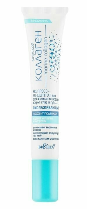 Белита Морской коллаген Экспресс-концентрат "Эффект подтяжки" для разглаживания морщин вокруг глаз и губ, омолаживающий, 20 мл
