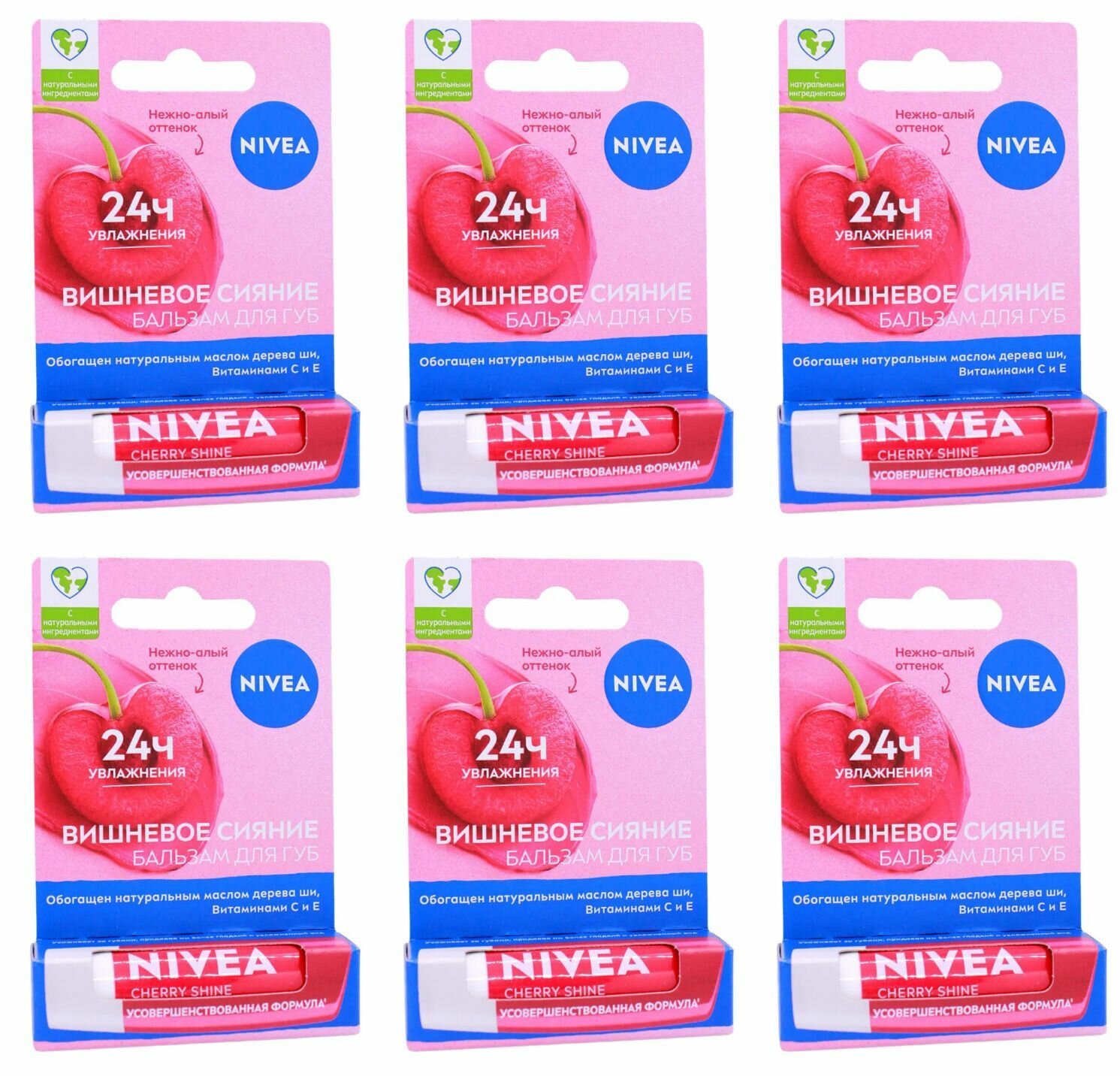 10 цен на Nivea Бальзам для губ Вишневое сияние, 4,8 г, 6 шт /
