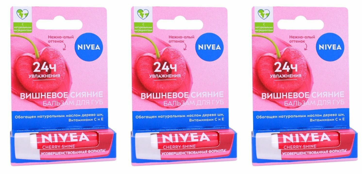 10 цен на Nivea Бальзам для губ Вишневое сияние, 4,8 г, 3 шт /