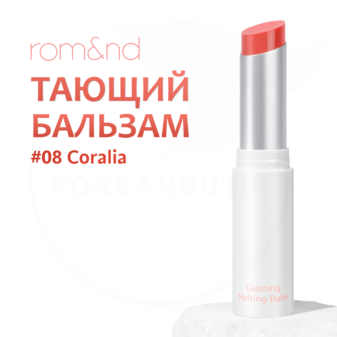 10 цен на Бальзам для губ оттеночный | ROM&ND Glasting Melting Balm 08 Coralia