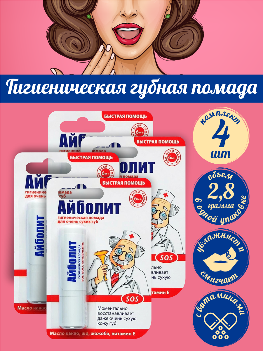10 цен на Губная помада гигиеническая Аванта Айболит SOS-восстановление 2,8 гр. х 4 шт.