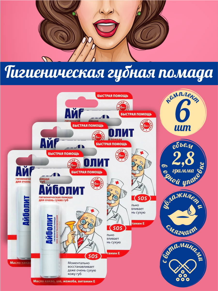 10 цен на Губная помада гигиеническая Аванта Айболит SOS-восстановление 2,8 гр. х 6 шт.