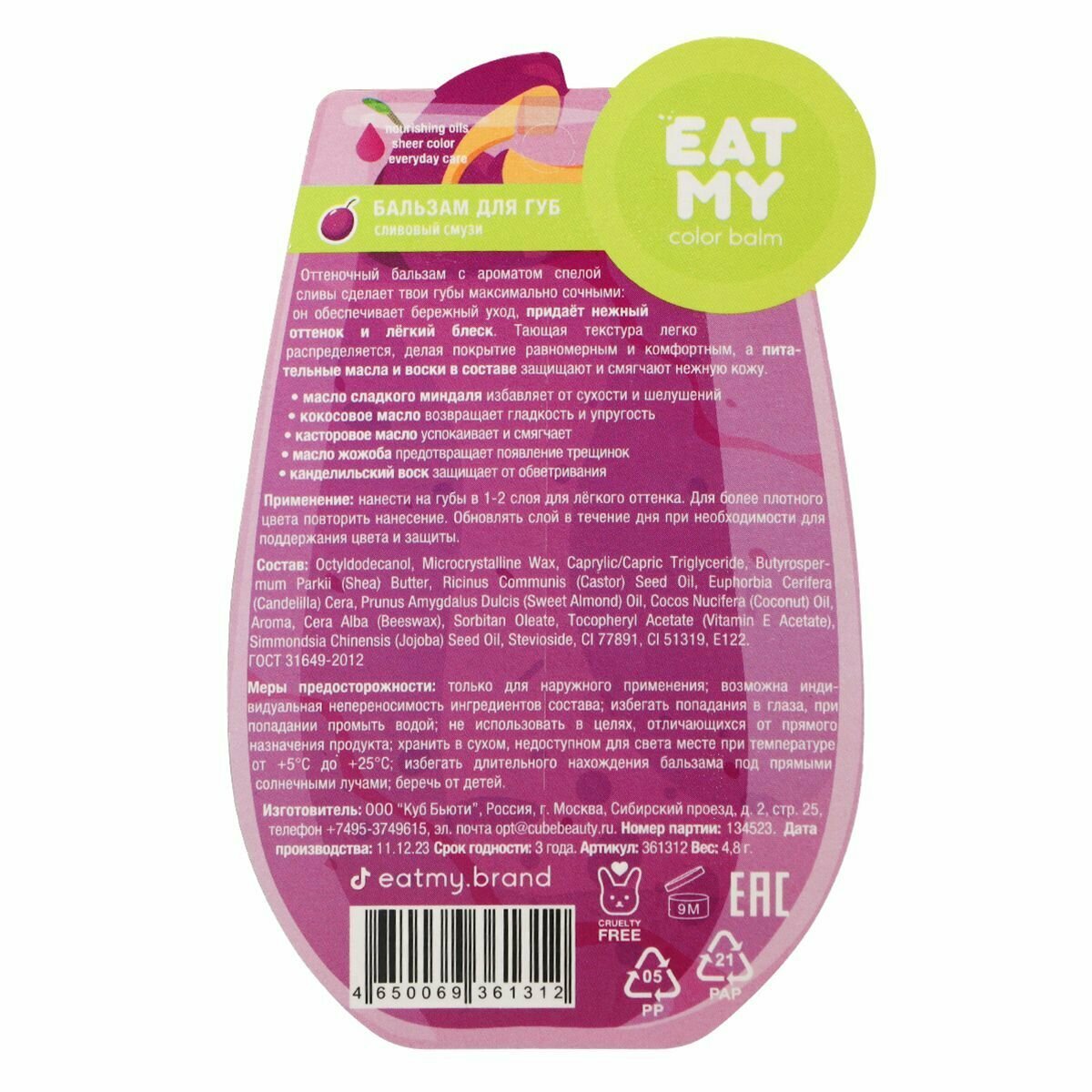 10 цен на EAT MY оттеночный бальзам - помада для губ "Сливовый смузи" 4,8 г