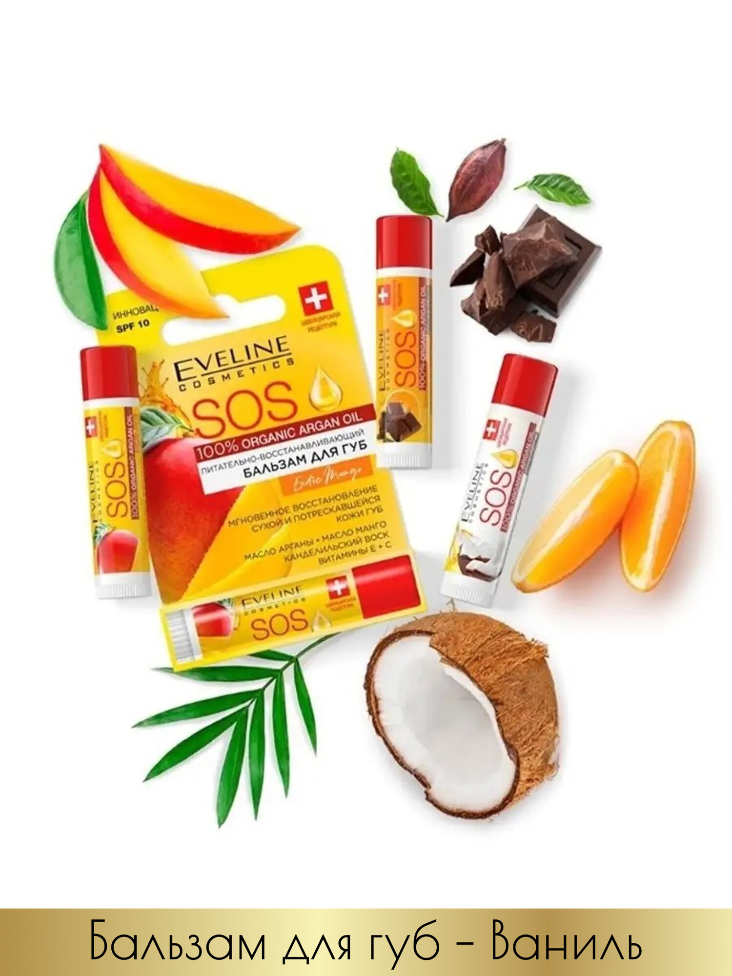 10 цен на Бальзам для губ EVELINE SOS ARGAN OIL Ваниль SPF-15 (питательно-восстанавливающий) 4,5 г