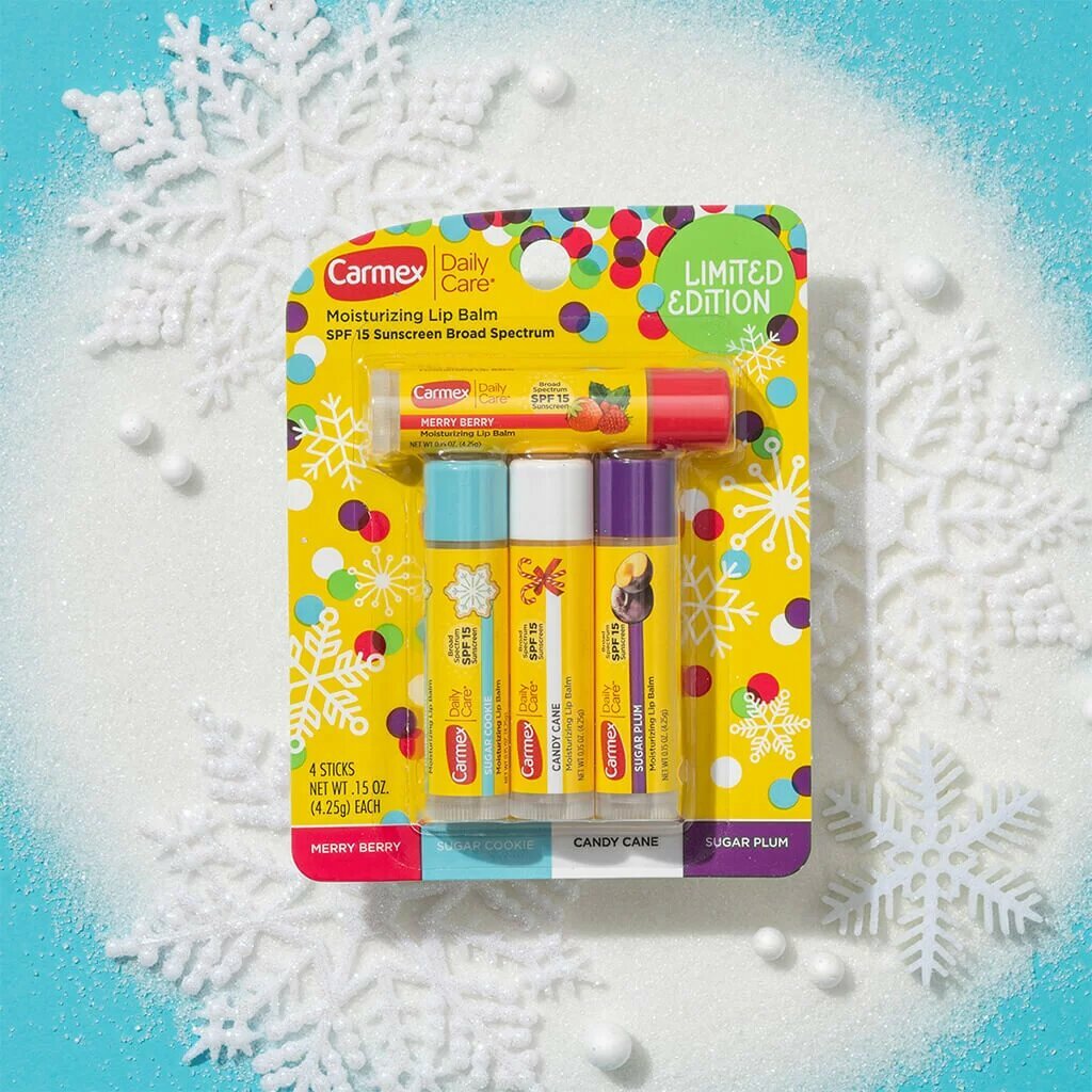 10 цен на Carmex Limited Edition Набор бальзамов для губ Стик 4 шт (ягодный, печенье, леденец, слива)