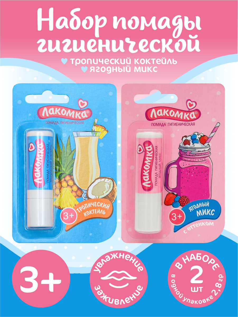 Набор Помады губной гигиенической Лакомка Тропический коктейль + Ягодный микс х 2,8 гр. информация: