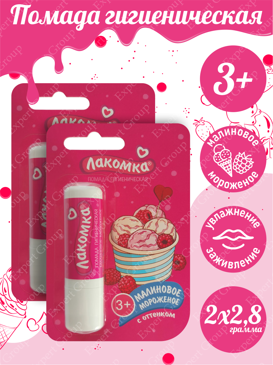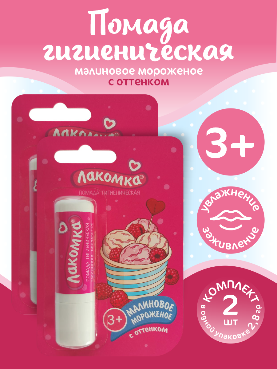Помада губная гигиеническая Лакомка Малиновое мороженое с оттенком 2,8 гр. х 2 шт. информация:
