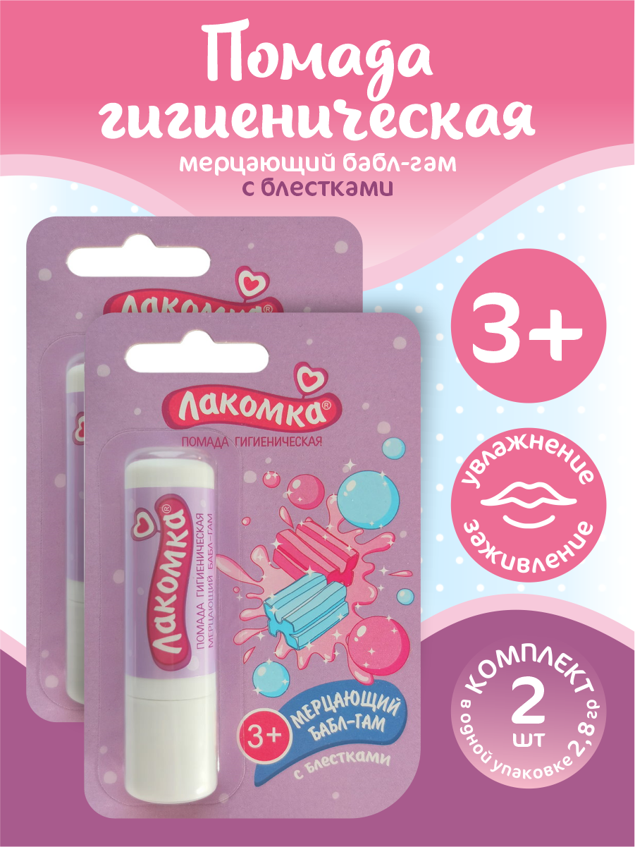 Помада губная гигиеническая Лакомка Мерцающий Бабл-Гам с блёстками 2,8 гр. х 2 шт. информация: