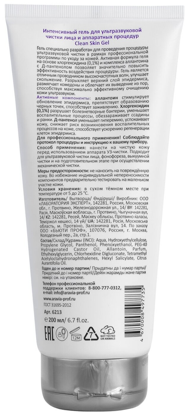 Гель ARAVIA PROFESSIONAL Интенсивный для ультразвуковой чистки лица и аппаратных процедур Clean Skin Gel, 200 мл информация: