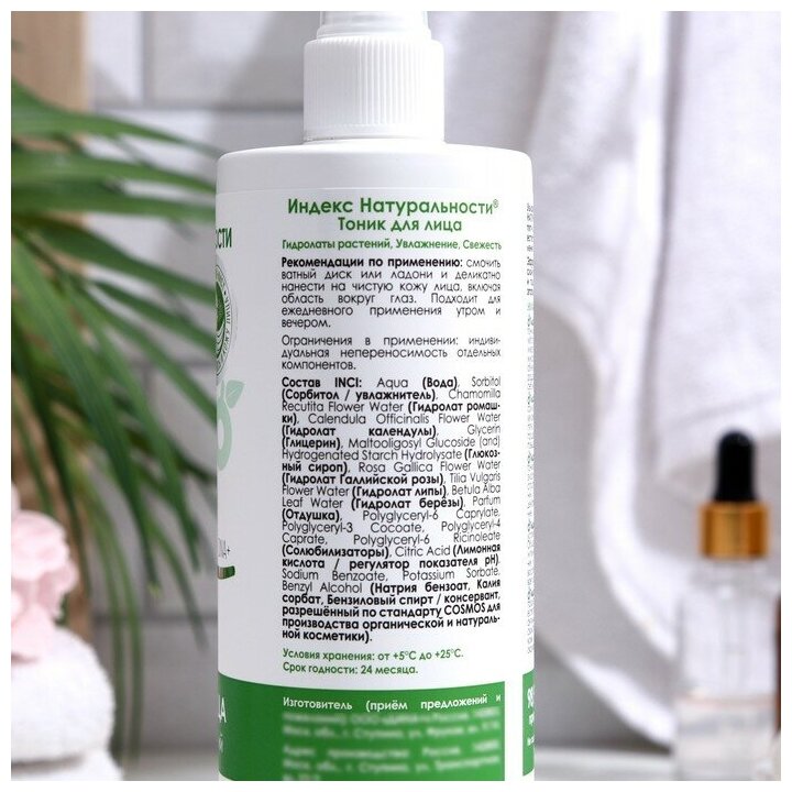 Тоник ИНДЕКС НАТУРАЛЬНОСТИ для лица увлажняющий и освежающий 400 мл 400 ₽