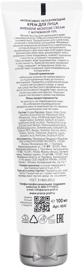 ARAVIA Крем для лица интенсивно увлажняющий Intensive Moisture с мочевиной (10%), 100 мл 463 ₽