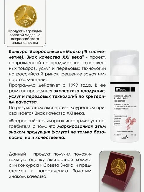 Отзывы на Крем от розацеа с азелаиновой кислотой и пробиотиками BTpeel, 50 мл