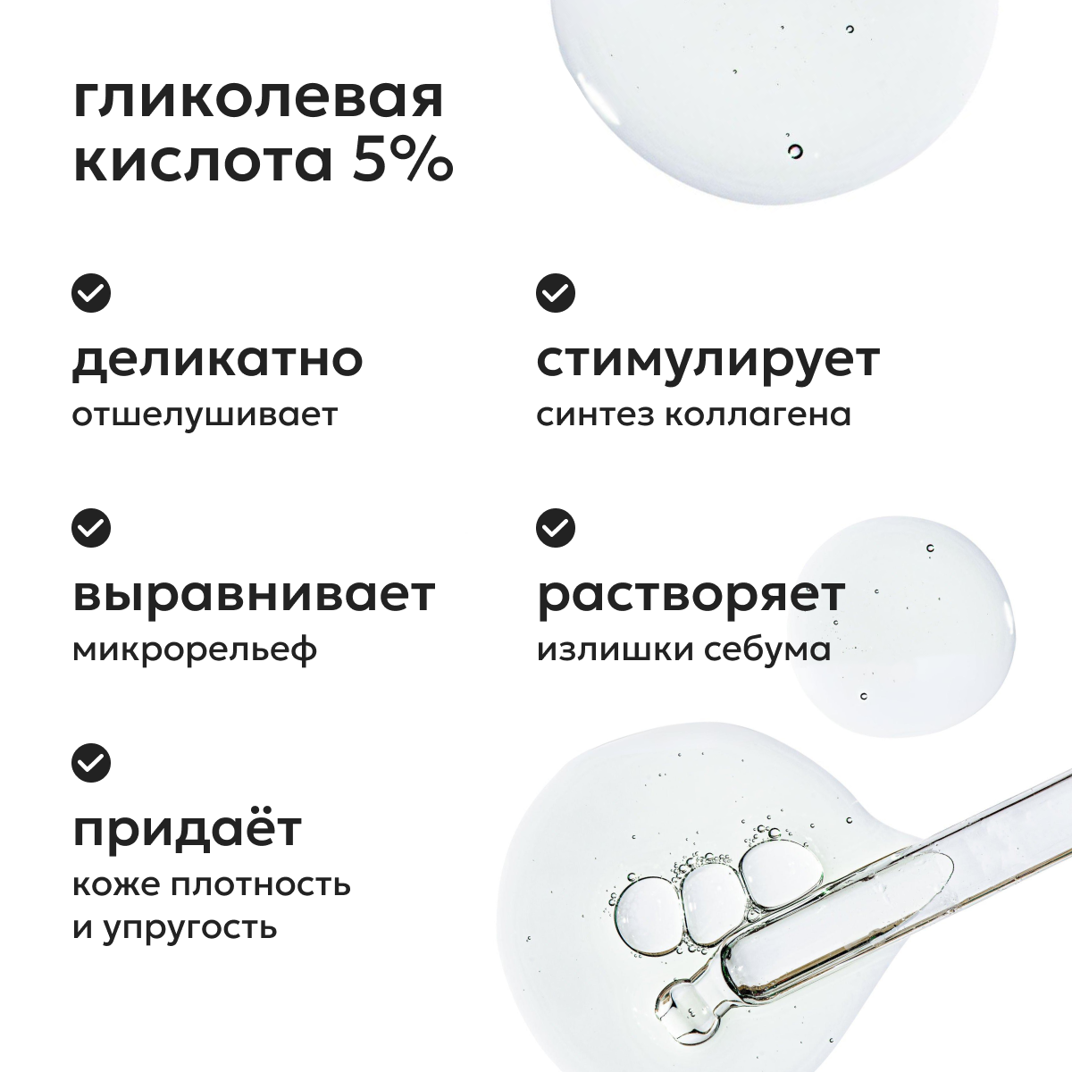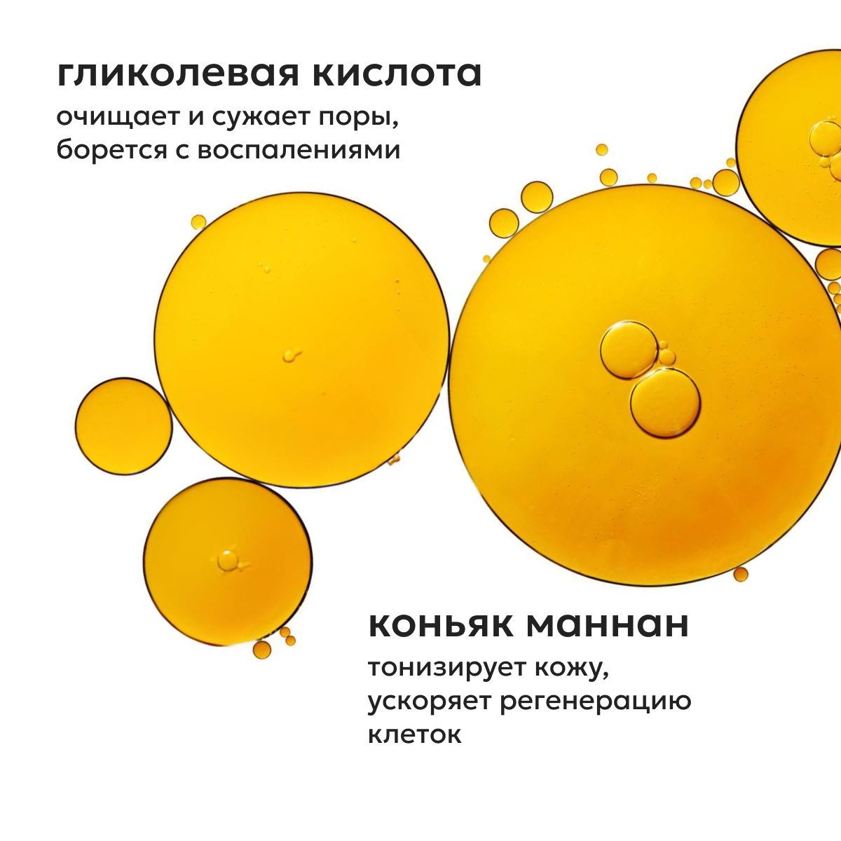 | Состав | Aqua, Glycolic Acid (гликолевая кислота), Glycerin, Propylene Glycol, Amorphophallus Konjac Root Extract (коньяк маннан), PEG-40 Hydrogenated Castor Oil, Niacinamide (витамин В3), Hydroxyethylcellulose, Parfum, Sodium Hydroxide, EDTA, Benzyl Alcohol, Benzoic Acid, Dehydroacetic Acid. |