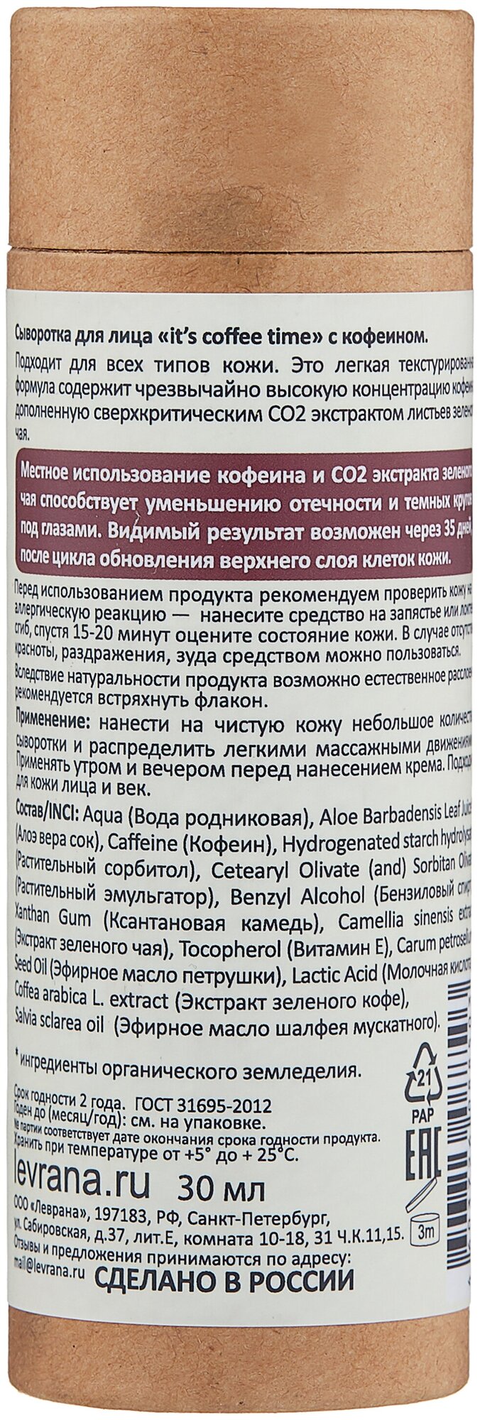 Сыворотка LEVRANA для лица с кофеином "It`s coffee time", 30 мл информация: