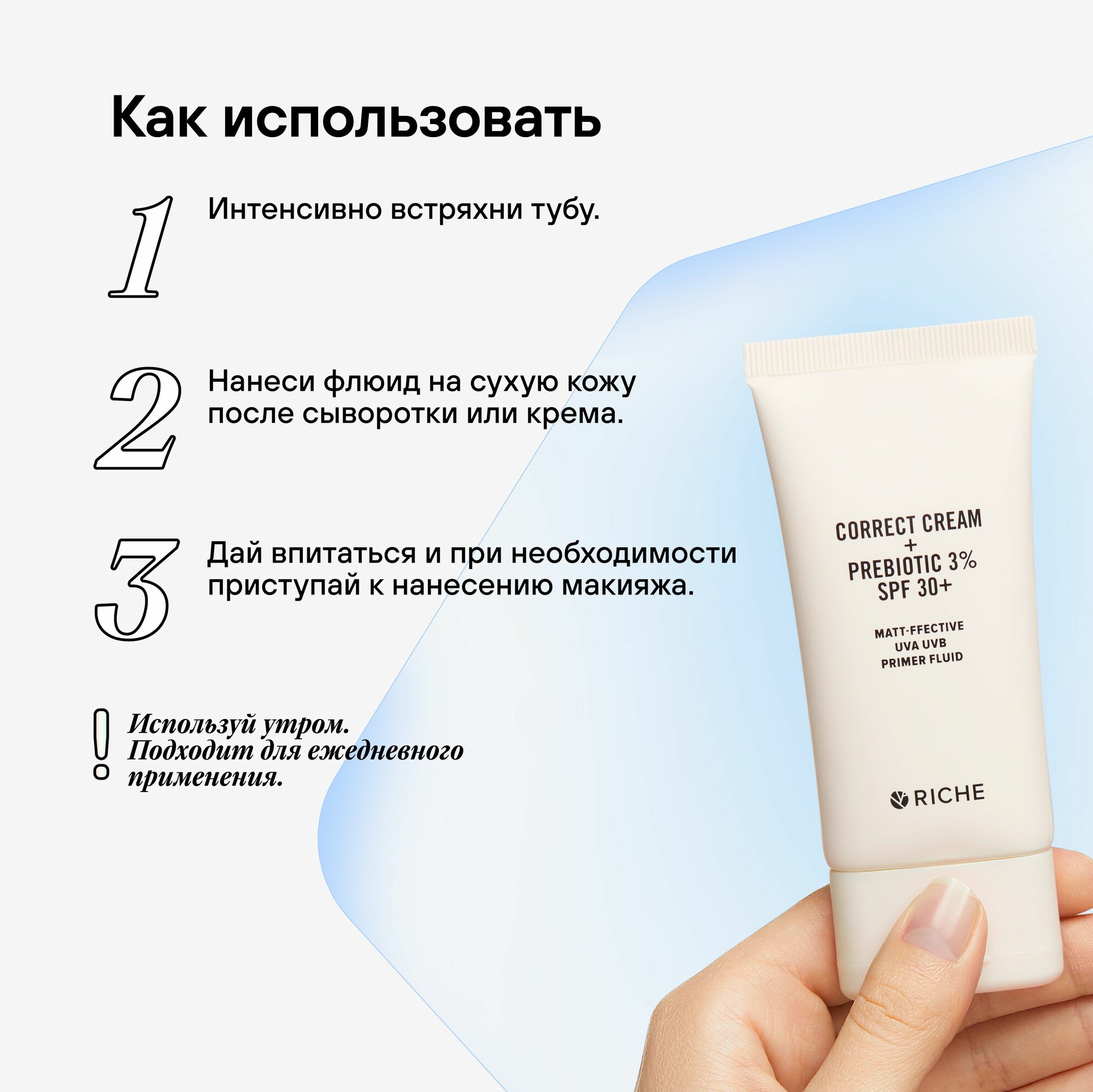 RICHE Матирующий праймер - флюид для лица с пребиотиками и центеллой, SPF 30+ 800 ₽