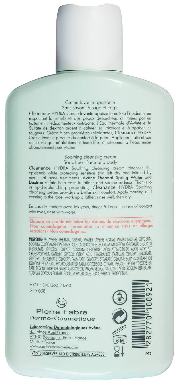 10 цен на Avene Cleanance Hydra Крем очищающий смягчающий для проблемной кожи 200 мл 1 шт