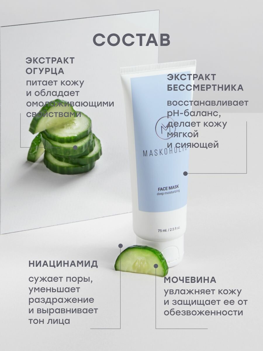 10 цен на MASKOHOLIC / Mаска для лица увлажняющая с ниацинамидом, питает и восстанавливает кожу , 75 мл.