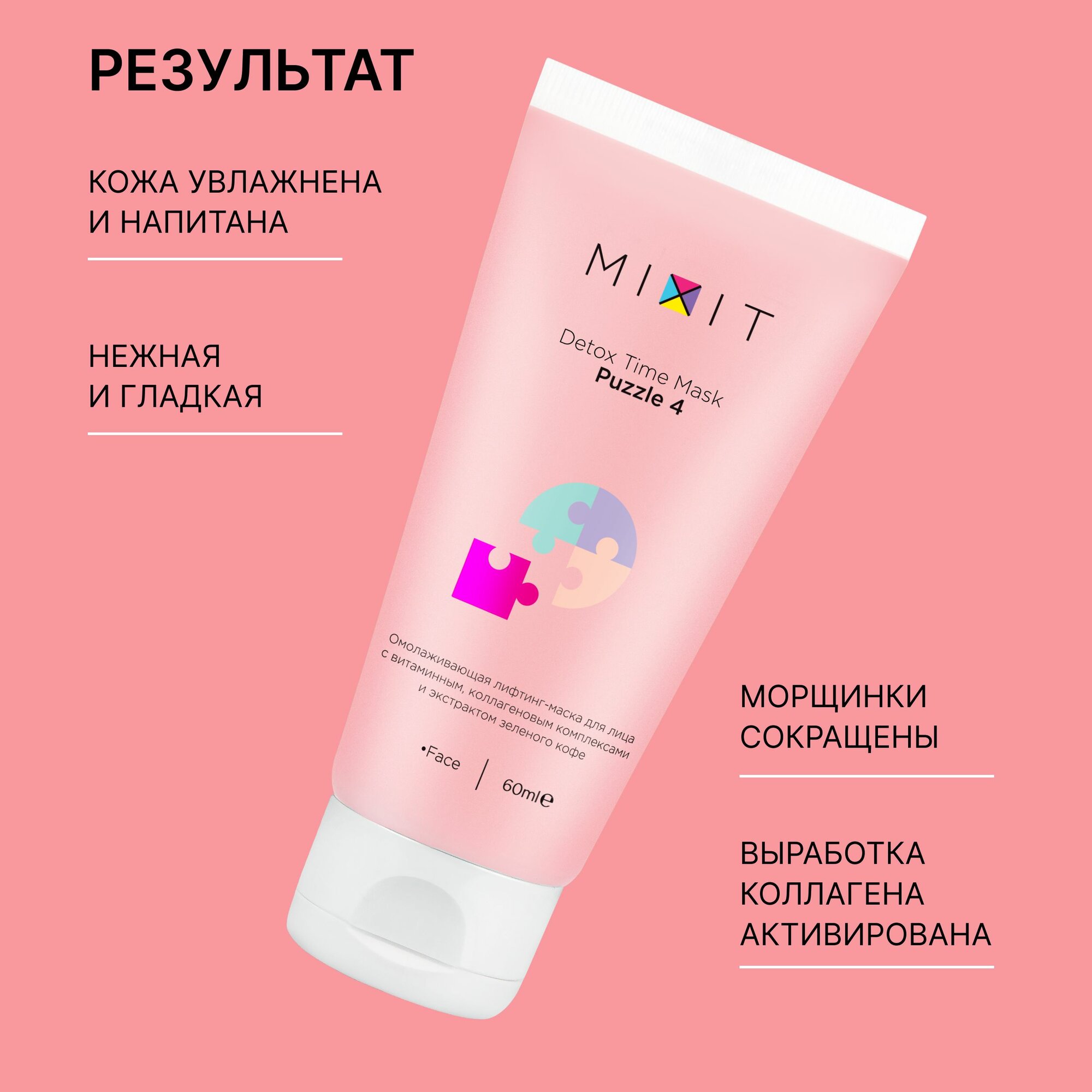 MIXIT Омолаживающая лифтинг-маска для лица с витаминным, коллагеновым комплексом и экстрактом зеленого кофе, Design Lift Mask Puzzle 4 60 ml