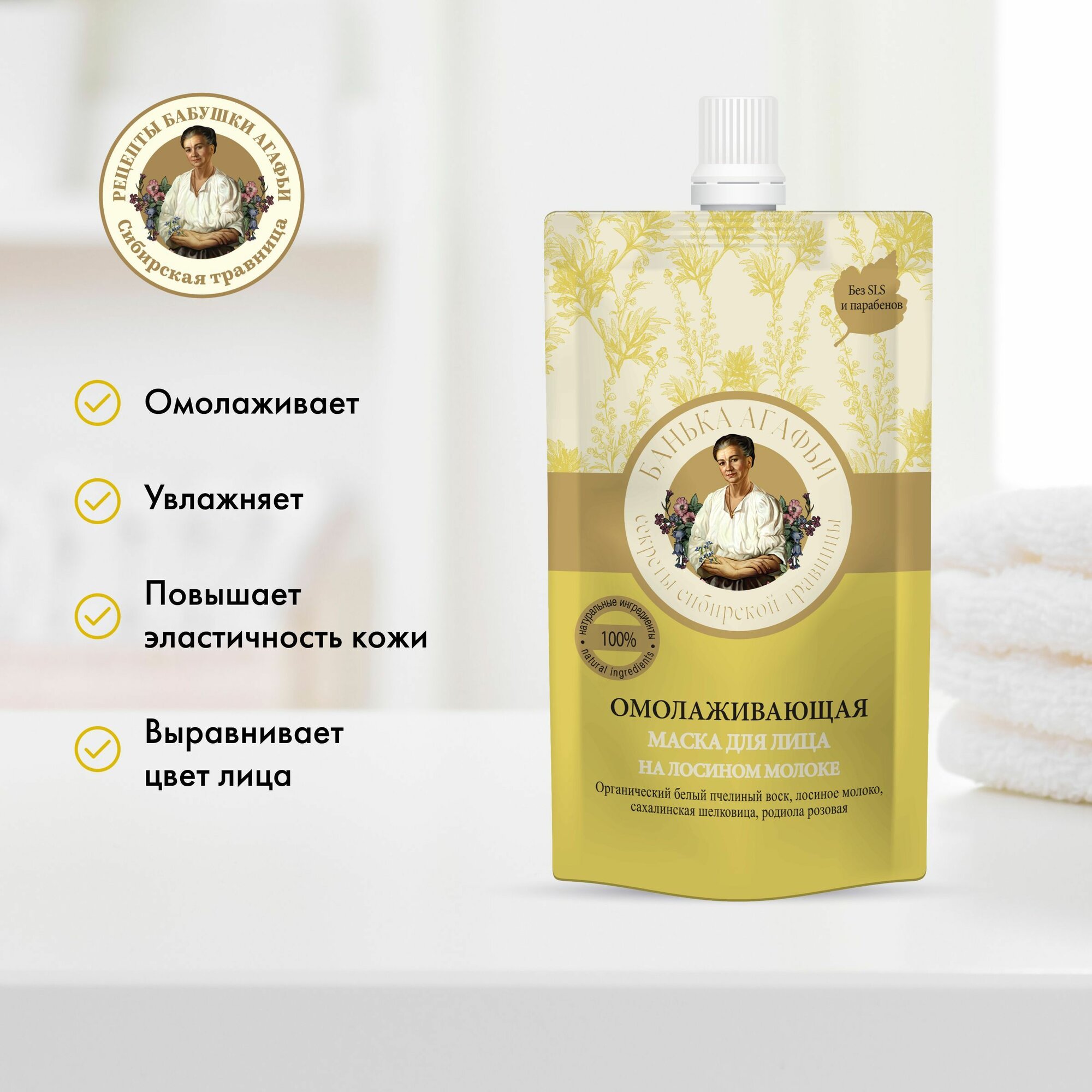 Рецепты бабушки Агафьи Маска для лица омолаживающая, На лосином молоке, 100 мл информация: