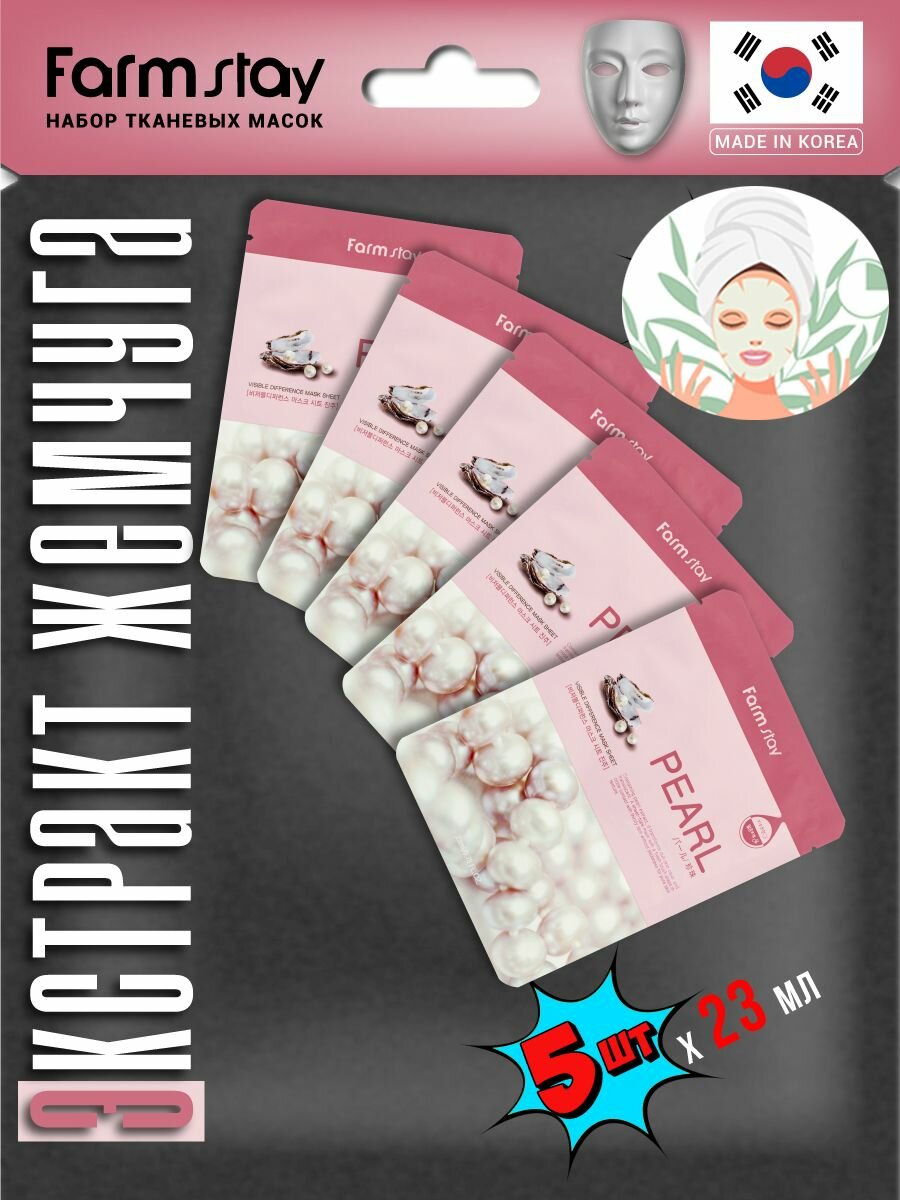 FARMSTAY Набор тканевых масок для лица с экстрактом жемчуга VISIBLE DIFFERENCE MASK SHEET PEARL, 23мл* 5шт