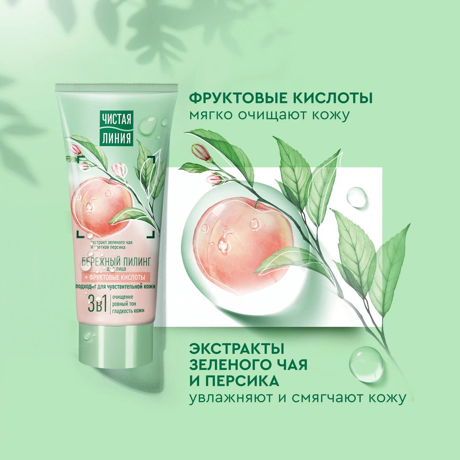 Чистая линия бережный пилинг для лица с фруктовыми кислотами