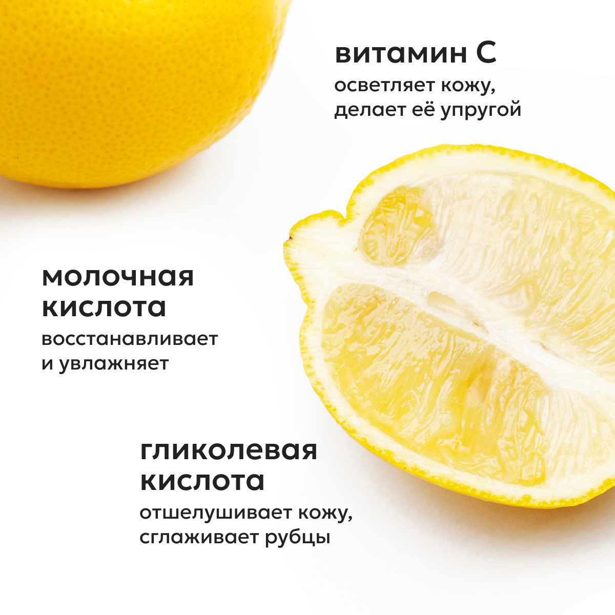 | Активный ингредиент | аллантоин / витамин C (аскорбиновая кислота) / витамин E / витамины / гликолевая кислота / глицерин / молочная кислота / фруктовые кислоты |