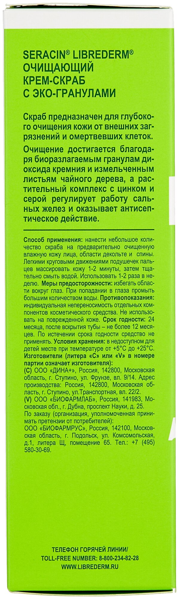 Крем-скраб для жирной кожи очищающий с эко-гранулами Seracin Librederm/Либридерм туба 75мл