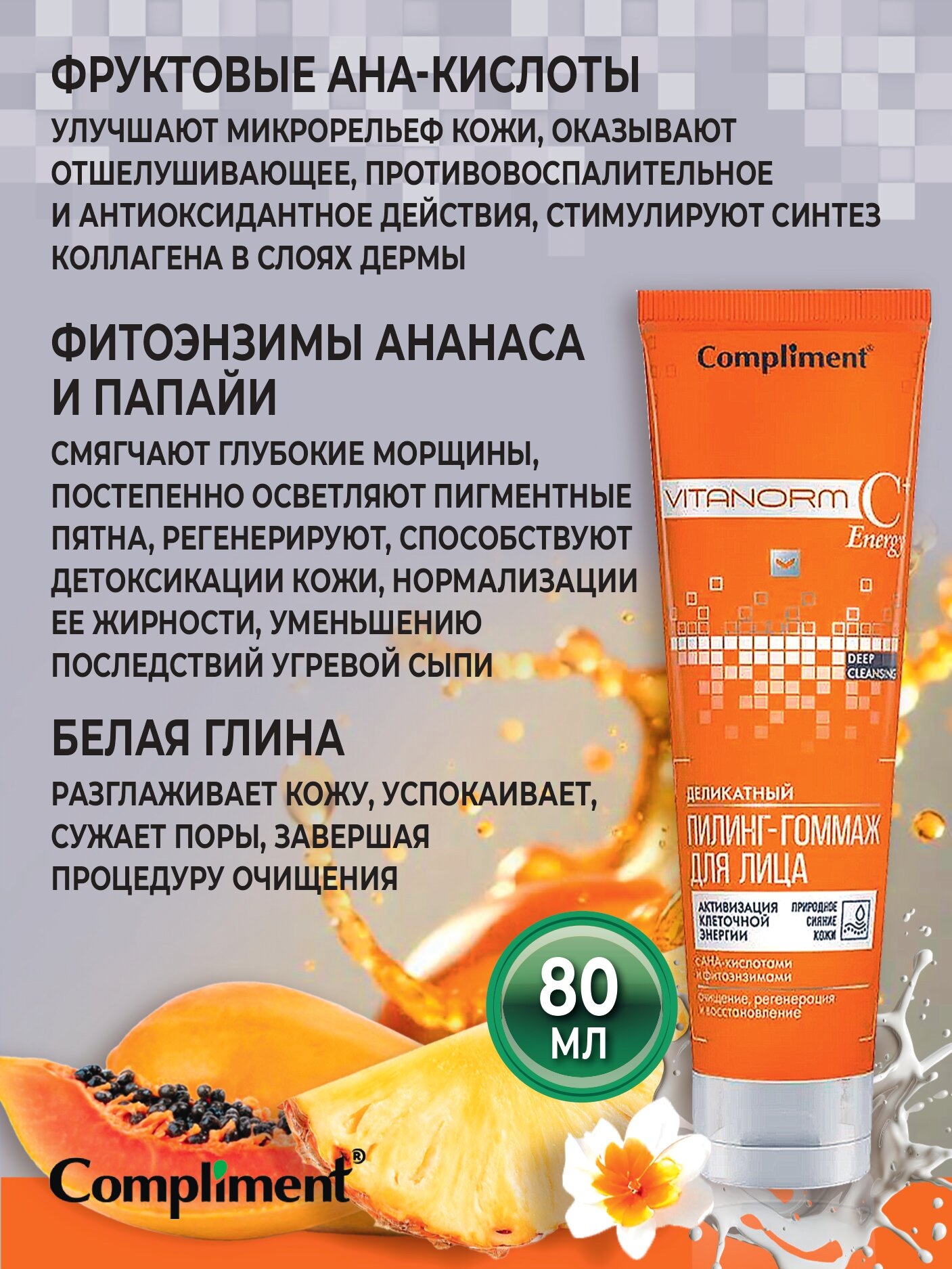 Compliment VITANORM C+Energy Деликатный пилинг-гоммаж для лица, 80 мл информация:
