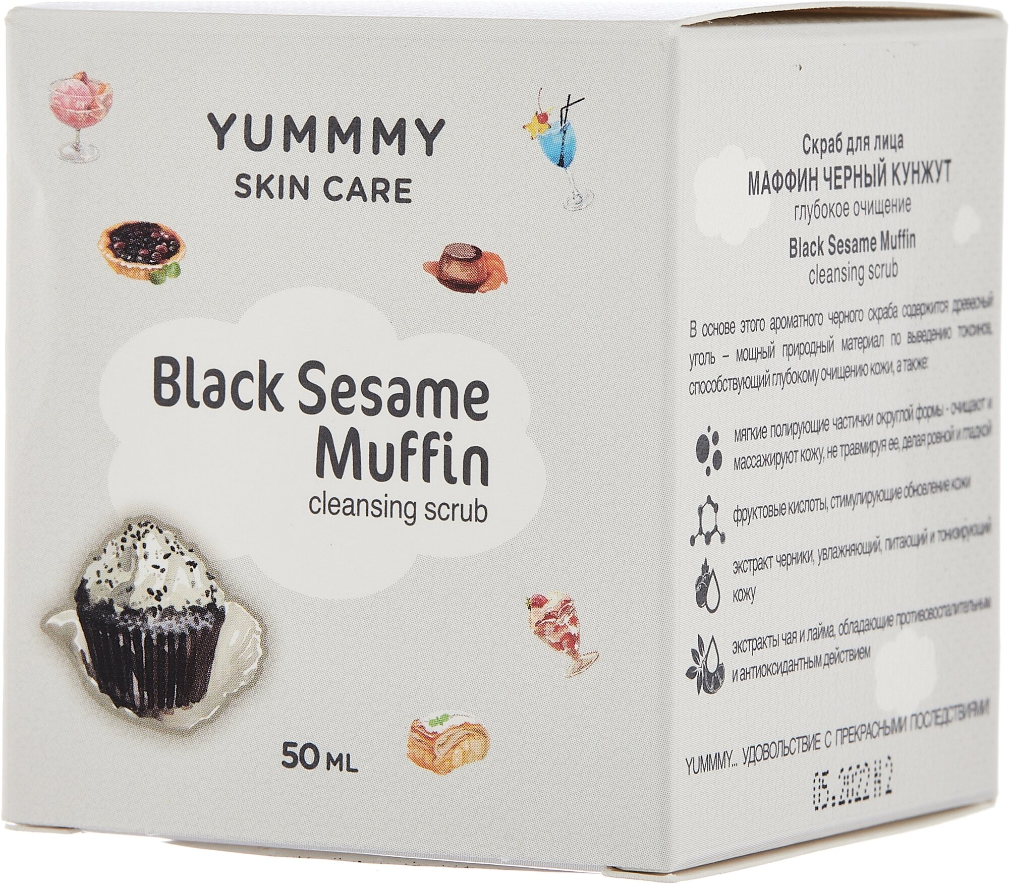 YUMMMY Полирующий скраб для обновления кожи лица маффин черный кунжут, 50мл информация: