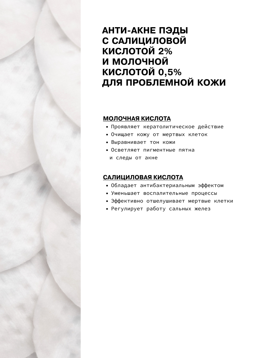 10 цен на ART&FACT. / Анти-акне пэды с салициловой кислотой 2% и молочной кислотой 0,5% для проблемной кожи, 115 мл