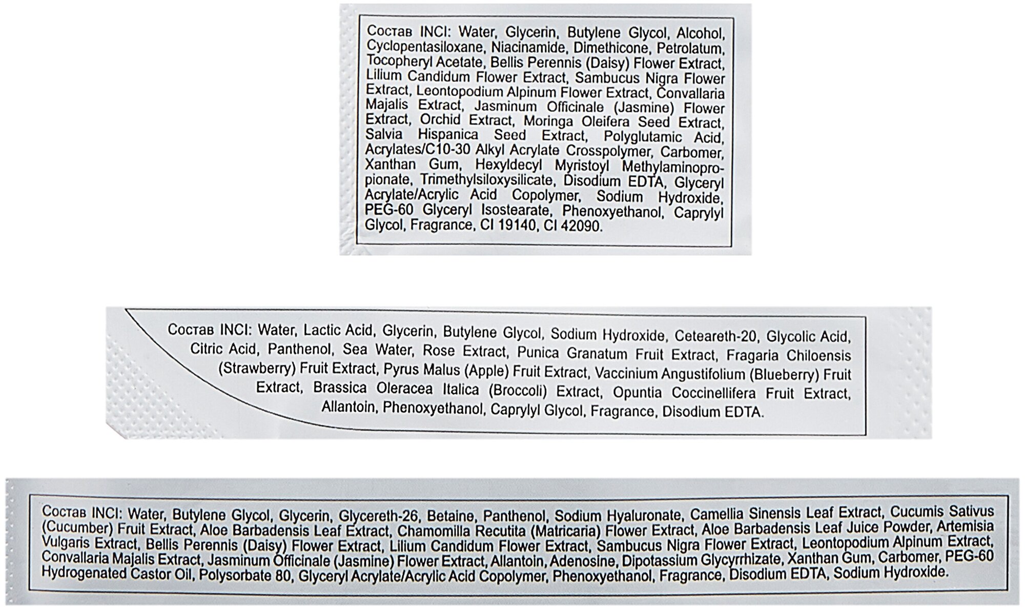 | Активный ингредиент | гиалуроновая кислота / гликолевая кислота / глицерин / молочная кислота / пантенол / фруктовые кислоты |